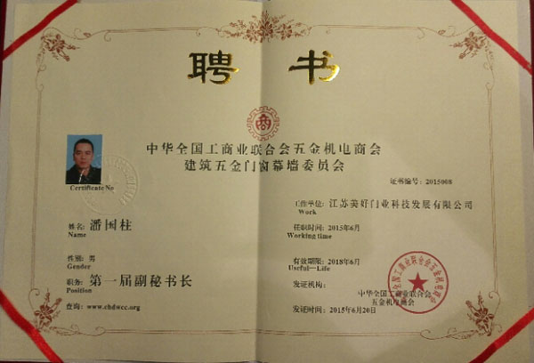 全國(guó)工商聯(lián)五金建筑門(mén)窗委員會(huì)副秘書(shū)長(zhǎng)