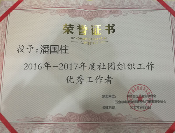 全國(guó)工商聯(lián)五金建筑門(mén)窗委員會(huì)優(yōu)秀工作者