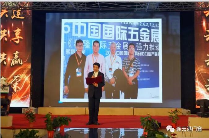 連云港市門窗協(xié)會(huì)會(huì)長(zhǎng)上臺(tái)聘請(qǐng)全國(guó)工商聯(lián)五金機(jī)電商會(huì)建筑門窗委員會(huì)會(huì)長(zhǎng)王辛先生出任連云港市門窗協(xié)會(huì)“名譽(yù)會(huì)長(zhǎng)”。