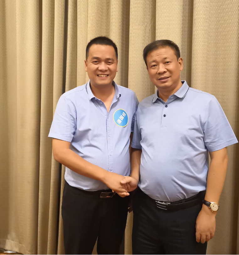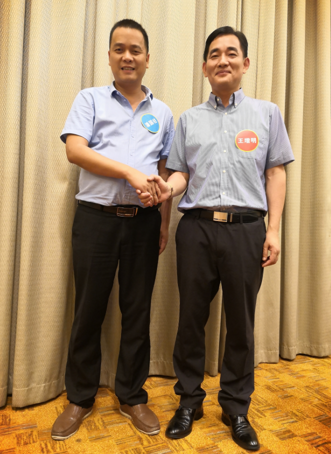 連云港市門窗協(xié)會會長、黨支部書記(江蘇美好門業(yè)科技發(fā)展有限公司董事長)潘國柱會長與北京江蘇企業(yè)商會常務副會長、北京市淮安企業(yè)商會會長王增明親切交談、合影留念。