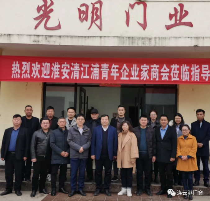 ? ? ? 11月28日,淮安清江浦青年企業(yè)家商會會長魏寶軍一行蒞臨連云港市門窗協(xié)會考察交流。期間連云港市門窗協(xié)會潘國柱會長帶隊陪同魏會長一行先后參觀考察了常務(wù)副會長單位“念佳門窗”和副會長單位“光明門業(yè)”兩家會員企業(yè),并就“推動跨地區(qū)合作,共享商協(xié)會資源,助力融合式發(fā)展“的主題開展座談。雙方簽約友好協(xié)議,正式締結(jié)友好商會。市工商聯(lián)張繼武副主席、市工商聯(lián)會員部王祥部長、市青年企業(yè)家聯(lián)合會費云健會長應(yīng)邀出席了本次活動。