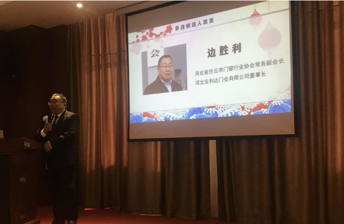 第三屆全國建筑門窗行業(yè)協(xié)會(huì)戰(zhàn)略聯(lián)盟候選人做自我介紹。