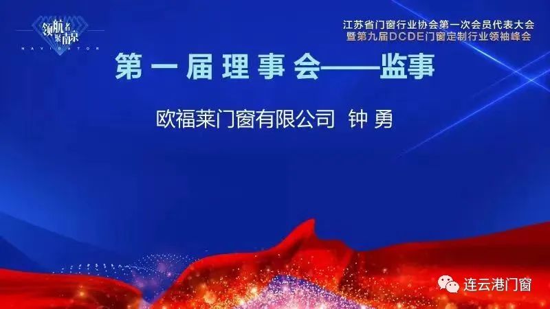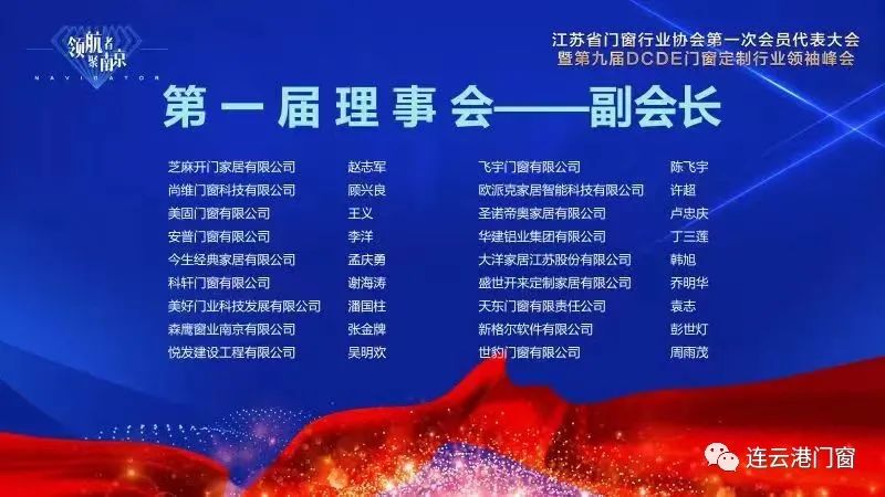 ? ? ? 連云港市門窗協(xié)會(huì)黨支部書(shū)記、會(huì)長(zhǎng)(江蘇美好門業(yè)科技發(fā)展有限公司董事長(zhǎng))潘國(guó)柱作為“江蘇省門窗行業(yè)協(xié)會(huì)”的八大發(fā)起人之一,應(yīng)邀出席了本次大會(huì)并被選舉為副會(huì)長(zhǎng)。