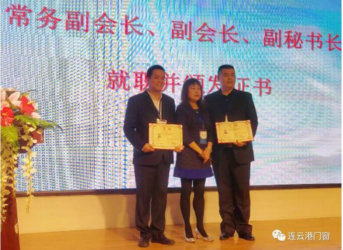 連云港市門窗協(xié)會(江蘇美好門業(yè)科技發(fā)展公司董事長)潘國柱連任委員會副秘書長一職并榮獲“2018年度商會工作特殊貢獻獎”