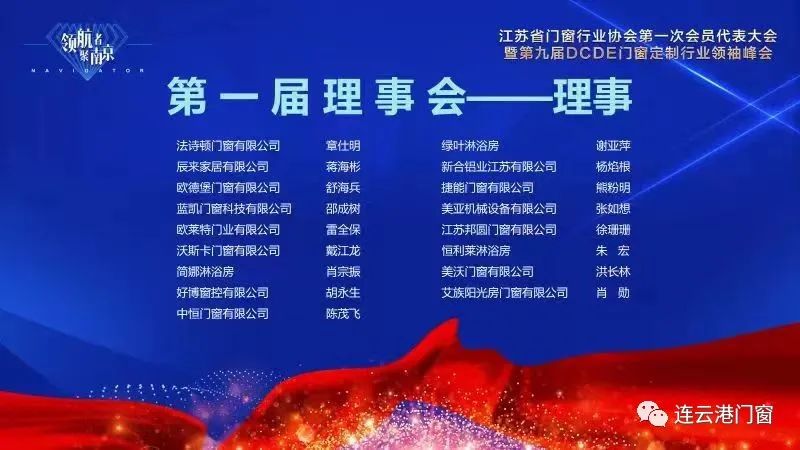 ? ? ? 連云港市門窗協(xié)會(huì)黨支部書(shū)記、會(huì)長(zhǎng)(江蘇美好門業(yè)科技發(fā)展有限公司董事長(zhǎng))潘國(guó)柱作為“江蘇省門窗行業(yè)協(xié)會(huì)”的八大發(fā)起人之一,應(yīng)邀出席了本次大會(huì)并被選舉為副會(huì)長(zhǎng)。